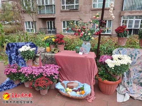 社区干部、附近居民、万守公益组织志愿者等陆续赶来帮忙,花园前热闹起来,大家齐心协力,十分钟不到,由乌鲁木齐植物园支持的120盆娇艳的菊花安置妥当,桃红色、艳黄色的菊花围成一圈,再加上一些旧物改造,这座新筹建的社区小花园,独具芬芳。