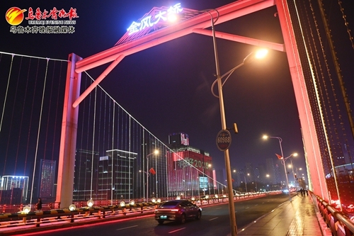 2024年12月31日23时10分,在经开区(头屯河区)金风大桥璀璨灯光迎新年。 记者陈岩摄记者从市城市管理局(行政执法局)了解到,乌鲁木齐市已全面启动元旦、春节节日氛围营造工作。春节期间,我市还将在西大桥、会展中心、高铁站等区域,开展“金蛇献瑞欢度春节”等主题灯光秀活动,西大桥片区综合运用红山荟、CCMALL等25座楼体灯光,展示新年祝福语、中华文化符号、传统年俗活动等内容,设置“我爱乌鲁木齐”打卡画面,为群众呈现精彩纷呈的视觉盛宴。迎接春节的到来。