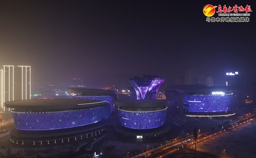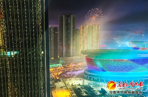 2024年12月31日,在乌鲁木齐市文化中心璀璨夺目的灯光秀点亮城市夜空。 记者石磊摄