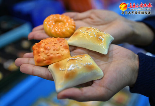大巴扎步行街阿凡提精品礼物馆,萌态可掬的“馕”元素小玩偶。(2月25日摄)